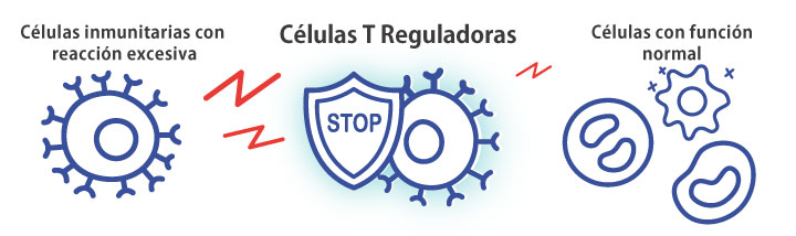 Normalmente, cuando el organismo es invadido por factores externos como virus o bacterias, las células inmunitarias son responsables de atacar y eliminar. Sin embargo, a veces pueden reaccionar de forma excesiva e incluso atacar a las células sanas del propio organismo. Las células T reguladoras actúan sobre este exceso de respuesta inmunitaria.